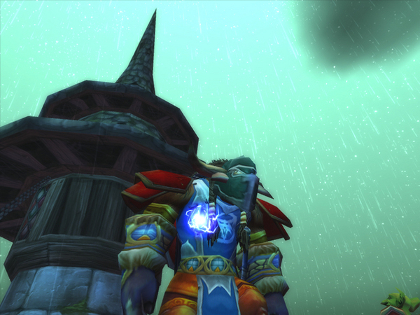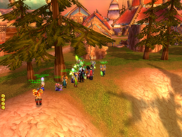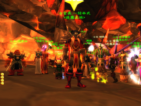 晚上八點五十不到,我就迫不及待的登入進去了。一進去,果然前一晚大家把「屍體」留在雷霆崖是對的,Sa的術士一上線之後馬上就可以開始拉人了。